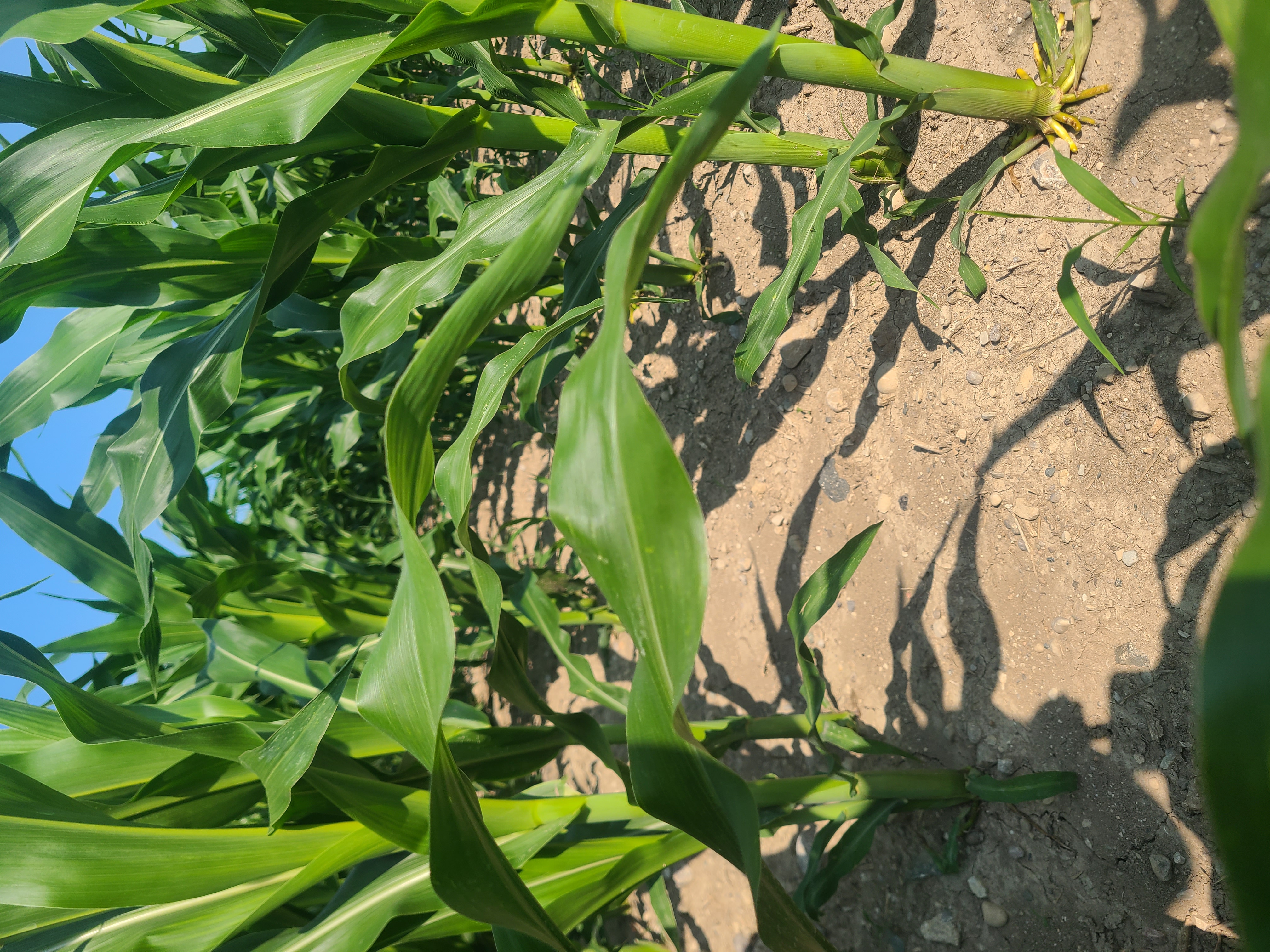 As observed in the photo, there is little no no vegetation / residue covering the bare soil between the corn plants.